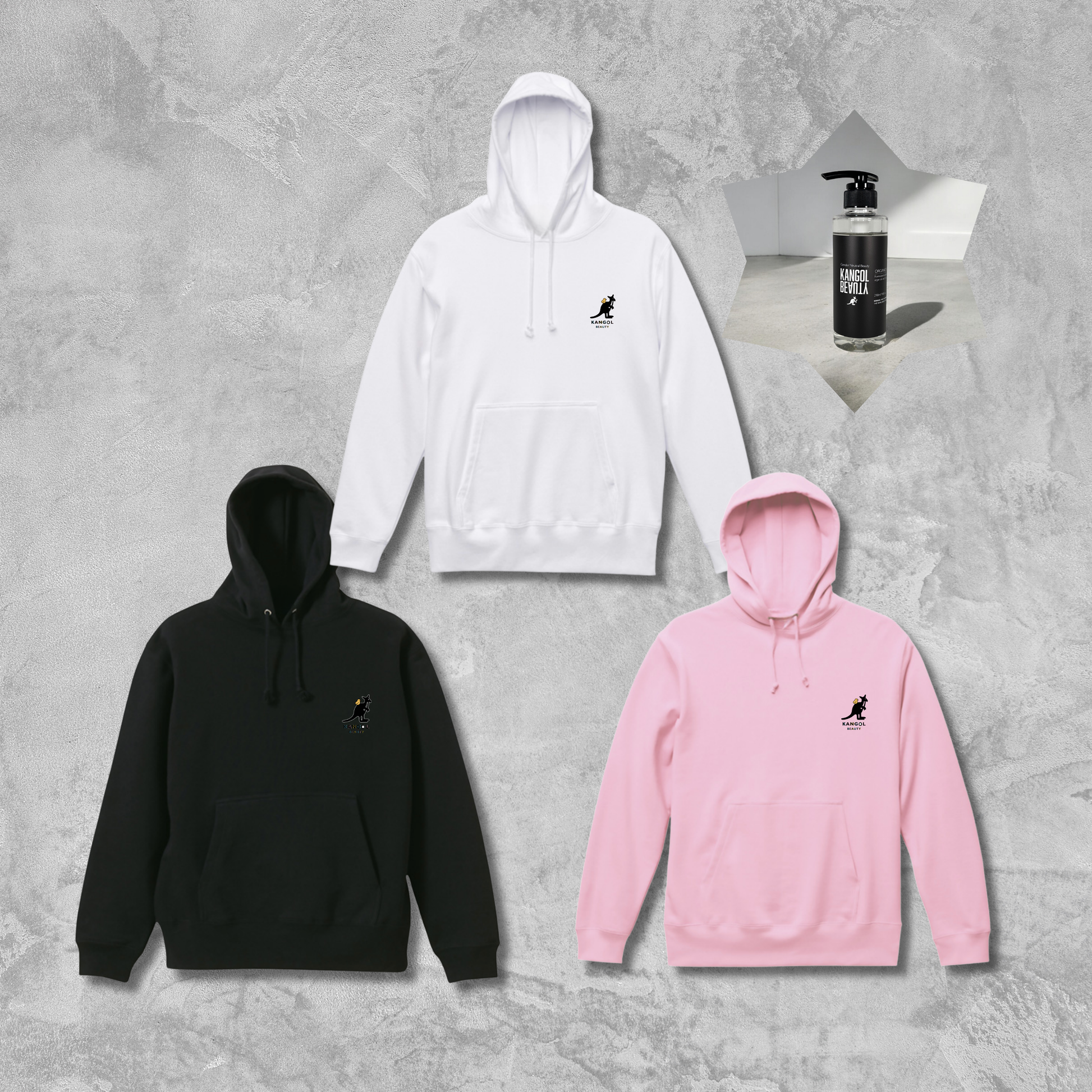 ひなぴよ x KANGOL BEAUTYコラボパーカー+シャンプーボトルセットです。
